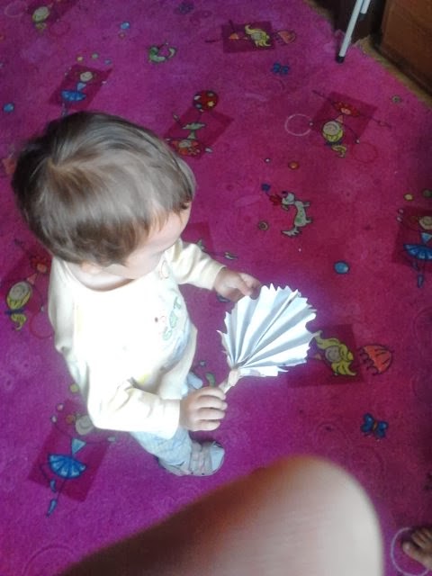Acum cateva zile a trecut pe la noi o mamica tanara, care are numai un copilas. Intamplator (sau nu) a trebuit sa o schimb pe Elena de fata cu ea. Mi-a spus bucuroasa ca a mai a invatat ceva: cum se prinde body ca sa nu mai cada strampii (ea il punea fetitei ei pe dedesubt), cum se capseaza pe umar ca sa nu se murdareasca si cat de simplu e sa folosesti apa in loc de servetele umede la fiecare schimbare de scutec. Daca nu era reactia ei, nu m-as fi gandit ca poate fi cuiva de folos sa vada lucrurile astea in direct. Prin urmare am fotografiat cateva secvente din acest procedeul banal.