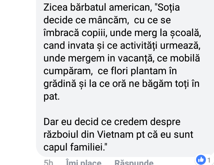 Am toata intelegerea fata de acest mecanism al autoconservarii psihice si fizice, numai ca ar trebui sa li se acorde sansa tuturor membrilor familiei de a recurge la el prin rotatie. Nu prea pare el compatibil cu crestinismul aplicat ca la carte, dar il intalnim la tot pasul si, decat sa pretindem ca nu ar trebui sa existe, mai practic ar fi sa invatam sa supravietuim cu el.